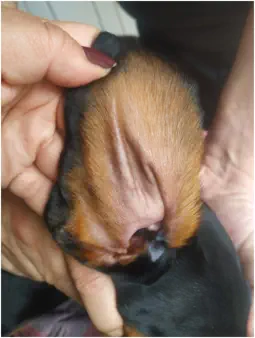 Hoch gezogene Ohren bei einem Welpen